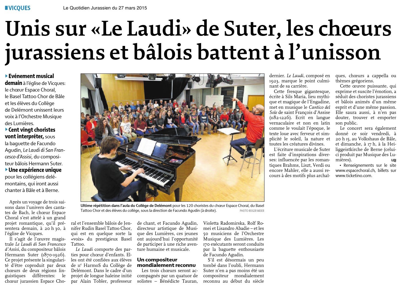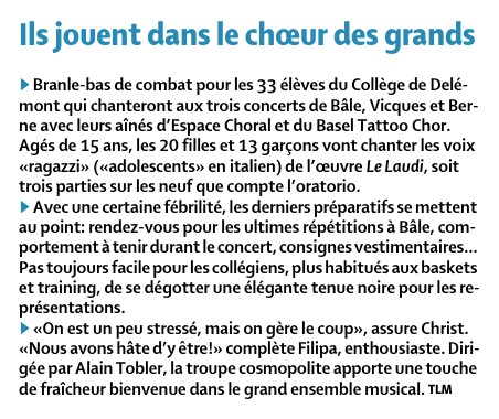 Le chœur accueille toutes les personnes qui souhaitent se mettre au chant choral, chanter plus souvent ou changer d’airs. Pour les moins expérimentés, fichiers de travail à disposition. Les nouveaux chanteurs bénéficient de trois répétitions d'essai et d'une cotisation d'accueil. Les répétitions ont lieu le lundi à l’aula de l’école secondaire de Bassecourt, de 19h30 à 21h45.