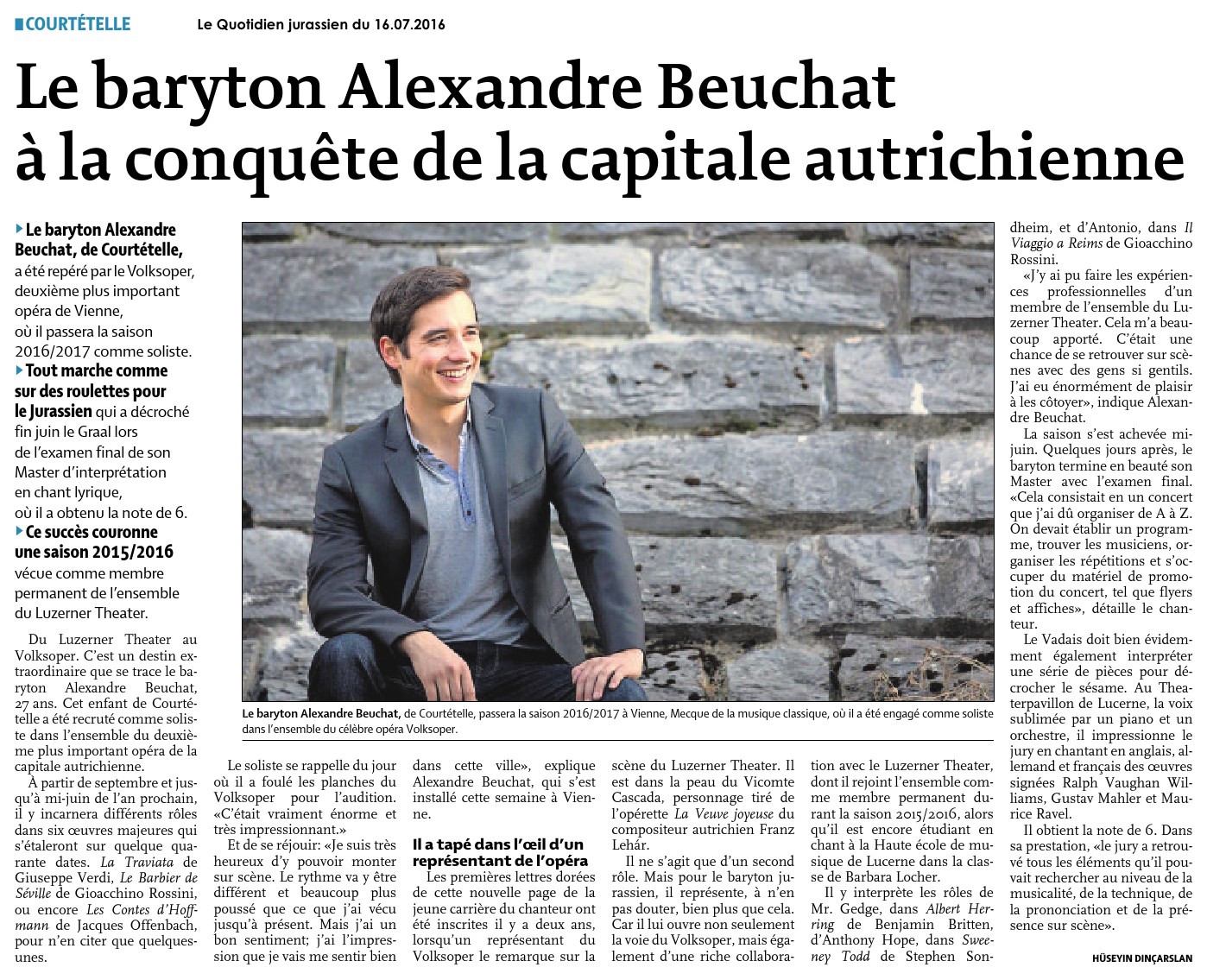 Transformé pour l’occasion en scène lyrique, le temple accueillera en outre Léonie Renaud, soprano, et Alexandre Beuchat (à dr.), baryton, deux jeunes solistes jurassiens dont la carrière prend actuellement un bel essor. En effet, Léonie Renaud chante le rôle-titre dans «La Belle de Cadix», production de la Route Lyrique de l’Opéra de Lausanne, gros succès depuis quelques semaines. Elle chantera aussi dans la production de fin d’année du même Opéra de Lausanne. Quant à Alexandre Beuchat, il vient d’être engagé comme soliste au Volksoper de Vienne. Pour le plus grand plaisir du public et des choristes, les deux jeunes artistes prêteront leurs voix et leur talent à quelques airs célèbres, n’en disons pas plus…